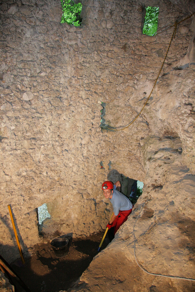 Jamarsko društvo Carnium je te dni zaključilo izkopavanja pod vodstvom arheologa mag. Draška Josipoviča, in zbralo prve materialne podatke o tem zanimivem objektu. Med redkimi najdbami, ki so se ohranile, je najzanimivejše odkritje drobnega srebrnika, ki so ga skovali l. 1436 v bavarskem Augsburgu, dokaz, da je grad po vsej verjetnosti mnogo starejši. Domnevamo, da so grad zgradili roparski vitezi, ki so v 14. ali 15. stoletju prežali nad popotniki ob enim od redkih naravnih prehodov čez Kokro. Kasneje, v 18. in 19. stoletju, je grad služil rokovnjačem, kot skrivališče ubežnikom pred dolgoletnim služenjem vojske. Obstoj skrivnega rova je z georadarjem ugotavljal dr. Tomaž Verbič, ki pa do globine 6 m ni zaznal nobenih praznih prostorov. Kaže, da je ta del ljudskega izročila le zanimiva legenda, ki bo ostala zavita v skrivnost…